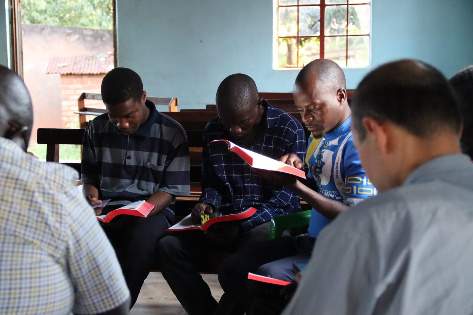 We returned to the lodge briefy to drop off Soyoung and pick up some resources for the afternoon, then Tom, Miles and Hui returned to Thyolo CCAP at 3pm. By 3:30pm, around 60 people gathered and Tom led them through the 12 steps, then divided them into 3 groups for demonstration Bible studies. Conveniently, Abusa Meshach, one of our Saturday guides, was the local pastor and so was alongside us to enthusiastically take part in the teaching and studies. We found out that in the past, this church had met regularly for Bible study on a Sunday afternoon, but this had dwindled in recent months and people were no longer coming.